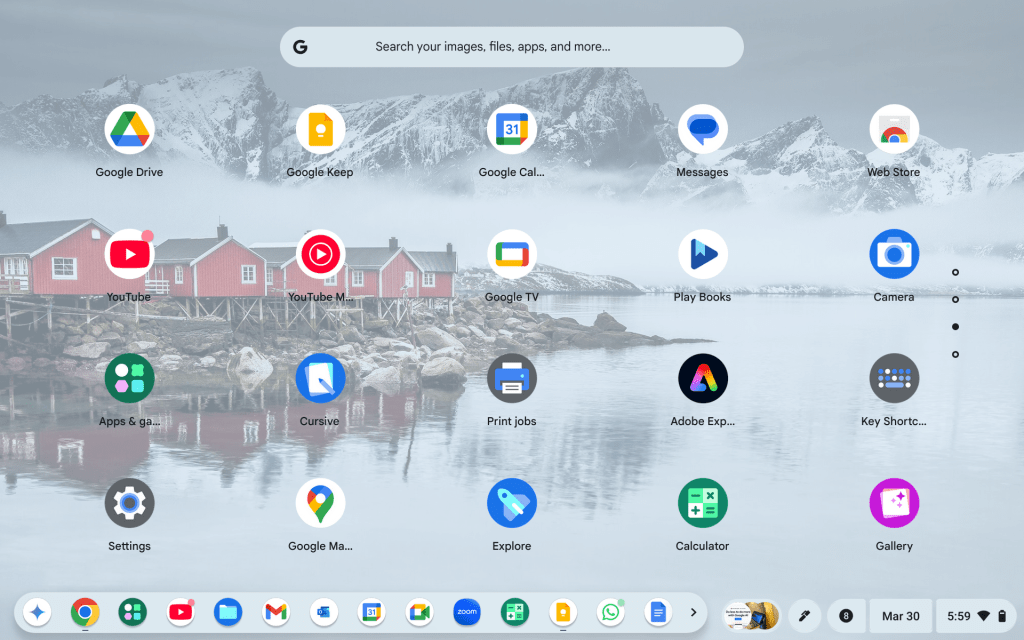 The layout of ChromeOS on the Duet is slightly different since the OS will put the Chrome browser in full screen when in tablet mode and show a floating dock for apps. Attaching the keyboard folio makes the desktop automatically switch to the regular desktop layout and taskbar running across the bottom of the screen.